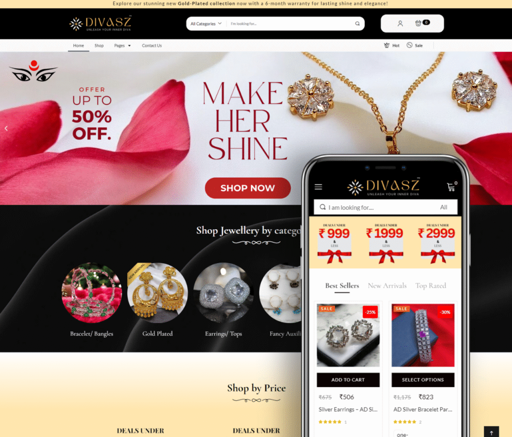Divasz.com was designed to highlight the beauty, craftsmanship, and heritage of fine jewellery. Every page was thoughtfully structured to evoke a sense of elegance — from high-quality visuals to smooth navigation and a seamless checkout process.